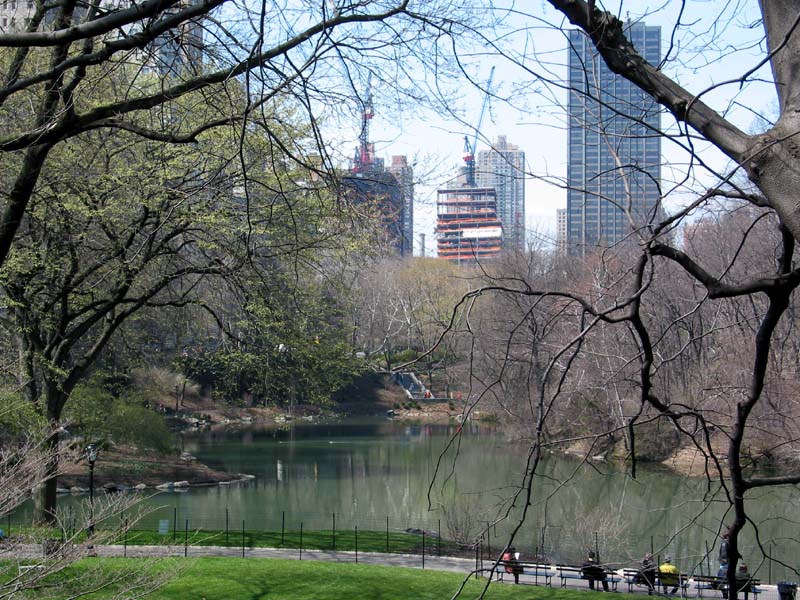 The view across Central Park's Sheep Meadow on 26 May 2003. Hearst Corporation Headquarters will rise to the left of Central Park Place.