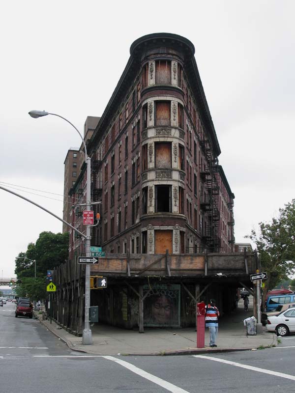 A building on the corner of Frederick Douglass Blvd, Macombs Pl, and 150th Street.