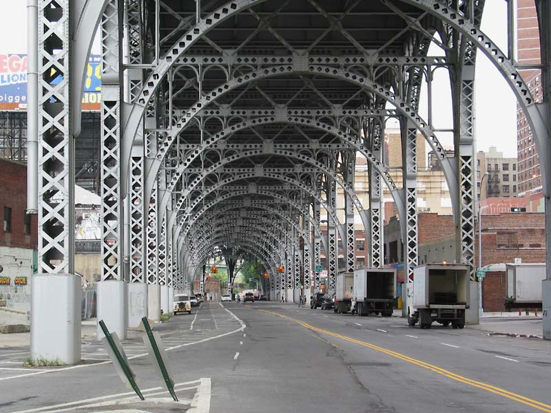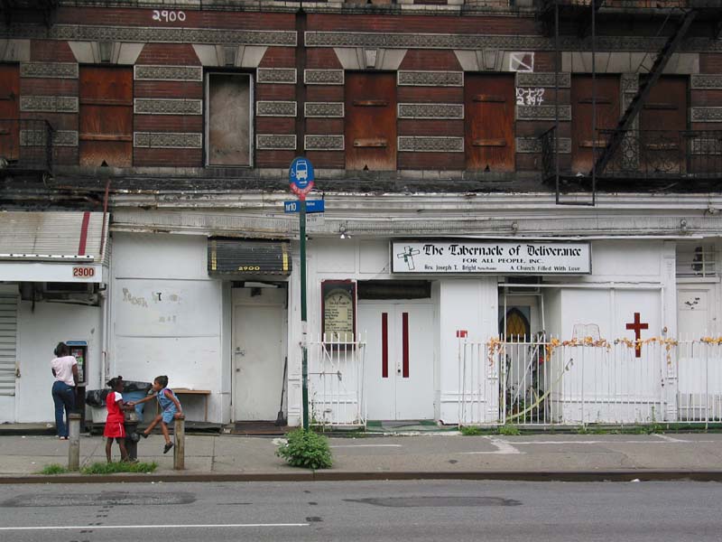 A street scene in Harlem. Frederick Douglass Boulevard around 154th Street.