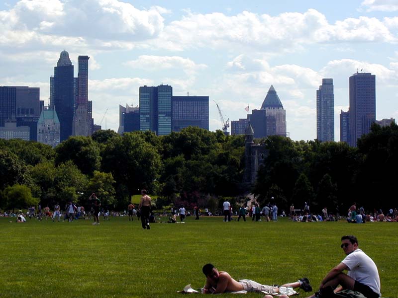 Where else in Central Park can you have an alfresco dinner on a luxurious carpet of emerald green grass and listen to a world-renowned symphony or opera? Only on the newly-restored Great Lawn. Every summer the New York Philharmonic and the Metropolitan Opera each give two free performances. On those nights a carpet of picnic blankets covers the lawn and the Manhattan skyline defines the most famous Park view in the world. During the daytime a livelier tempo dominates, as Park users enjoy eight softball fields or play soccer, basketball, and volleyball.
